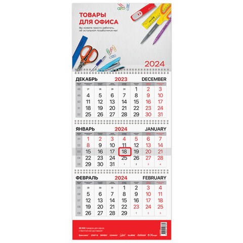 Календарь квартальный на 2024 г., корпоративный базовый, дилерский, УНИВЕРСАЛЬНЫЙ, 505963