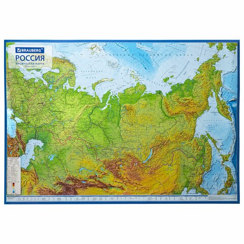 На физической карте России BRAUBERG отображаются названия рек и морей, городов и областей, гор и вулканов.