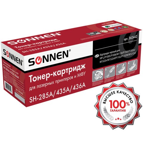 Картридж лазерный SONNEN (SH-CE285A/CB435A/CB436A) для HP LJ P1002/1504/1102/M1212, ВЫСШЕЕ КАЧЕСТВО, ресурс 2000 страниц, 362442