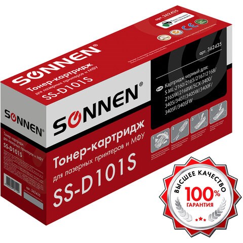 Совместимый картридж SONNEN SS-D101S для лазерных принтеров и МФУ: SAMSUNG ML-2160/2165/2167/ 2168/2165W/2168W/SCX-3400/3405/3407/3405W/3400F/3405F/3405FW.