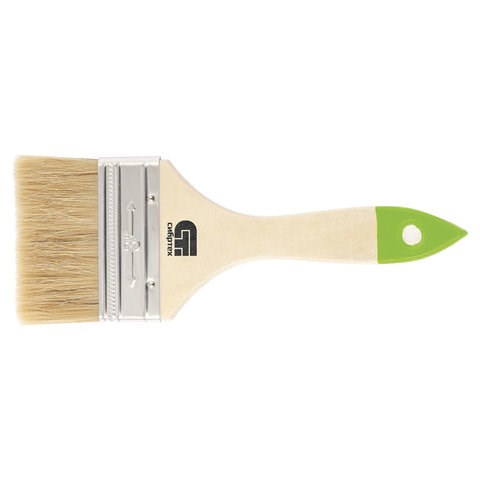 Кисть плоская из натуральной щетины, с деревянной ручкой, покрытой лаком. Предназначена для выполнения малярных работ на плоских поверхностях.