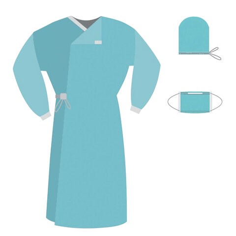 Набор одноразовой стерильной одежды хирурга для малоинвазивных и кратковременных операций и процедур.