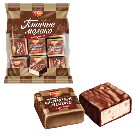 Конфеты шоколадные РОТ ФРОНТ "Птичье молоко" - воздушное суфле со сливочно-ванильным вкусом.