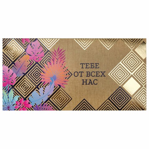 Конверт для денег "ТЕБЕ ОТ ВСЕХ НАС", Орнамент, 166х82 мм, фольга, ЗОЛОТАЯ СКАЗКА, 113760