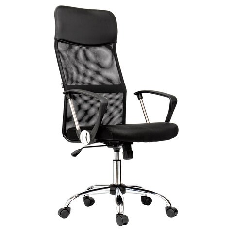 Спинка кресла выполнена из прочного сетчатого акрила. Материал обладает высокой воздухопроницаемостью, легко чистится, способен подстраиваться под физиологические изгибы спины, при этом сохраняет форму и не растягивается. Верхняя, наиболее подверженная износу, часть спинки изготовлена из экокожи. Помимо этого в области поясницы предусмотрена специальная вставка из эластичной ленты для дополнительной поддержки спины.