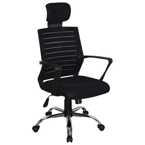 Высокая сетчатая спинка и подголовник, выраженная поддержка поясницы, прочные пластиковые подлокотники, хромированное пятилучие гарантируют комфортное долгосрочное использование.
