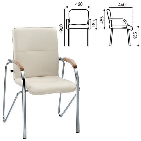 Кресло для приемных и переговорных "Samba", деревянные накладки, хромированный каркас, кожзам бежевый