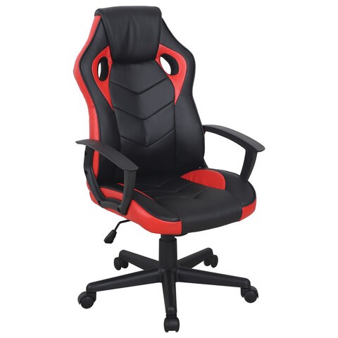 Кресло компьютерное BRABIX "Fighter GM-008", экокожа, черное/красное, 532506
