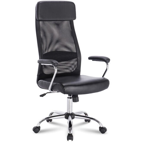 Кресло офисное BRABIX "Flight EX-540", хром, экокожа, сетка, черное, 531850