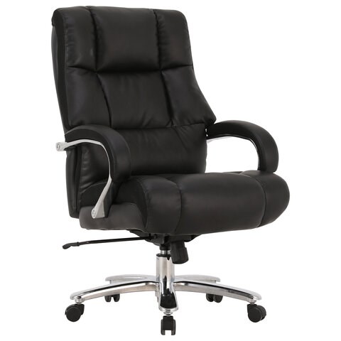 Кресло офисное BRABIX PREMIUM "Bomer HD-007", НАГРУЗКА до 250 кг, рециклированная кожа, хром, черное, 531939