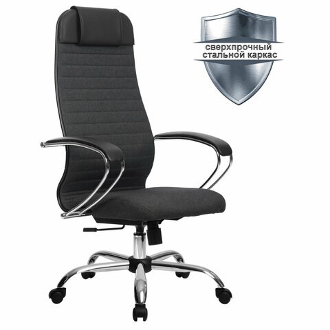 Кресло офисное МЕТТА "К-27" хром, ткань, сиденье и спинка мягкие, серое