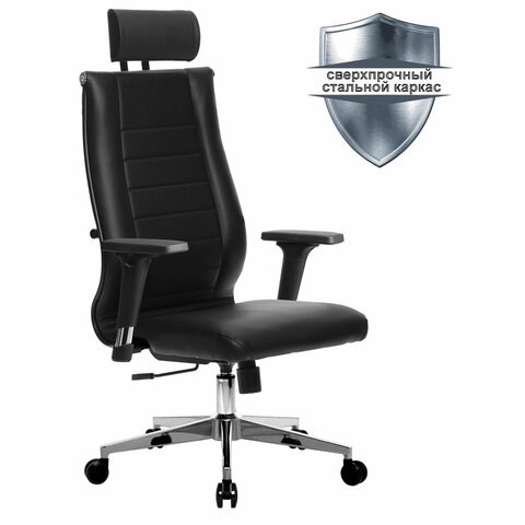 Кресло офисное МЕТТА "К-32-2D" хром, экокожа, подголовник, сиденье и спинка мягкие, черное