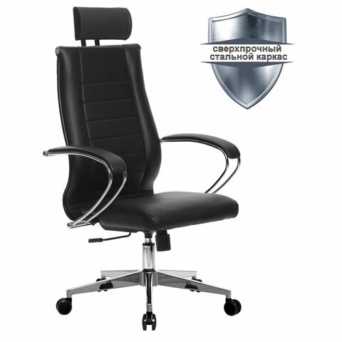 Кресло офисное МЕТТА "К-32" хром, экокожа, подголовник, сиденье и спинка мягкие, черное