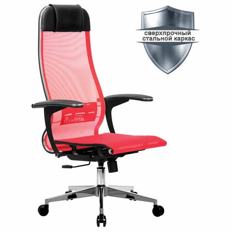 Кресло офисное МЕТТА "К-4-Т" хром, прочная сетка, сиденье и спинка регулируемые, красное