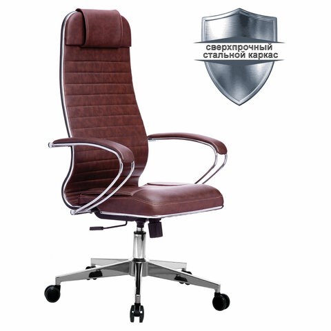 Кресло офисное МЕТТА "К-6" хром, экокожа, сиденье и спинка мягкие, темно-коричневое