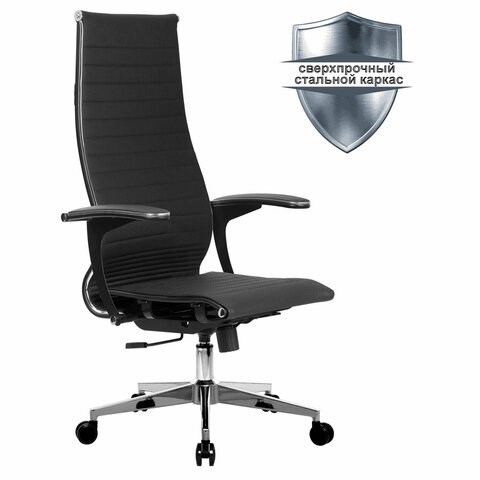 Кресло офисное МЕТТА "К-8.1-Т" хром, экокожа перфорированная, сиденье регулируемое, черное