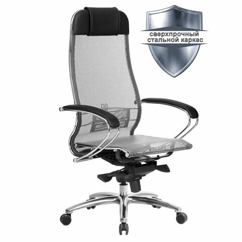 Кресло офисное МЕТТА "SAMURAI" S-1.04, сверхпрочная ткань-сетка, серое