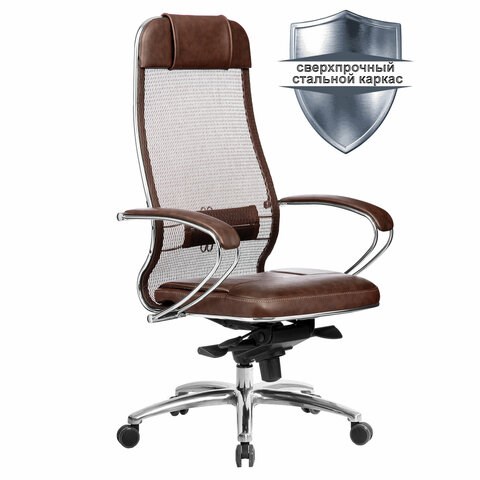 Кресло офисное МЕТТА "SAMURAI" SL-1.04, сверхпрочная ткань-сетка/экокожа, темно-коричневое