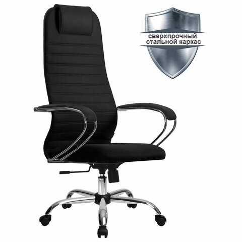 Кресло офисное МЕТТА "SU-B-10" хром, ткань-сетка, сиденье и спинка мягкие, черное