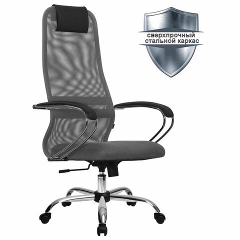 Кресло офисное МЕТТА "SU-B-8" хром, ткань-сетка, сиденье мягкое, светло-серое