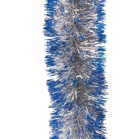 Мишура 1 штука, диаметр 70 мм, длина 2 м, серебро с синими кончиками, 71734