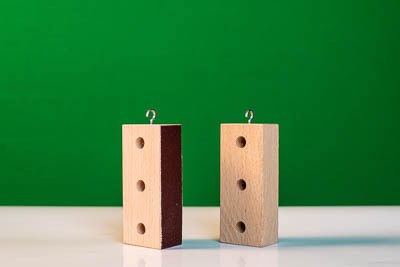 Набор состоит из двух деревянных брусков с гнездами для грузов, крючком для крепления динамометра и поверхностями разной степени шероховатости (поверхность одного из них покрыта наждачной бумагой) и разной площади.