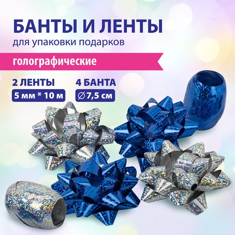 Набор для декора и подарков 4 банта, 2 ленты, голография, цвета синий, серебристый, ЗОЛОТАЯ СКАЗКА, 591848