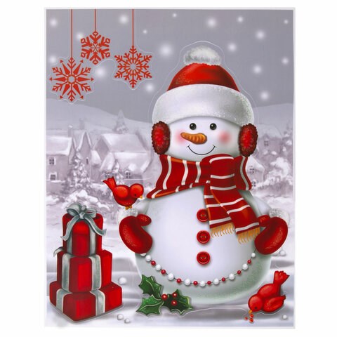 Наклейка для окон двусторонняя МНОГОРАЗОВАЯ 30х38 см, "Снеговик с подарками", ЗОЛОТАЯ СКАЗКА, 591922