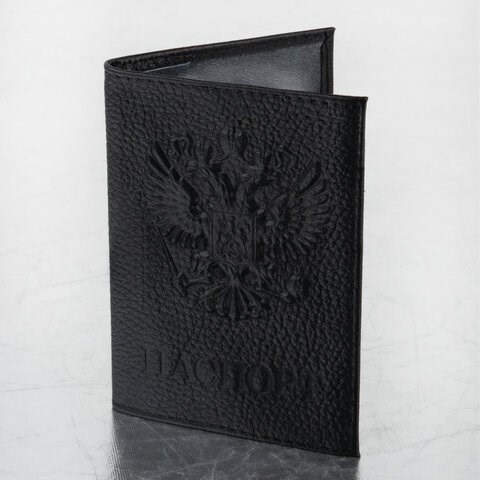 Модель выполнена из натуральной кожи "флоттер" насыщенного черного цвета, что подчеркнет стиль и изысканный вкус обладателя. Украшена тисненой надписью "Паспорт" с государственной символикой "Герб", края прострочены. На внутреннем развороте расположены два кармана из прозрачного пластика. Упакована в пакет с европодвесом.