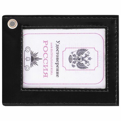 Обложка для удостоверения натуральная кожа шик гладкий, с окном, черная, STAFF "Profit", 237194