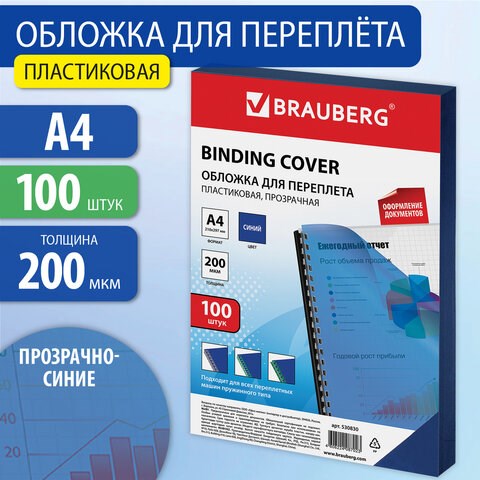 Пластиковые обложки BRAUBERG придадут документам эстетичный внешний вид и защитят от повреждений. Предназначены для переплета документов брошюровщиком с помощью пластиковых и металлических пружин.