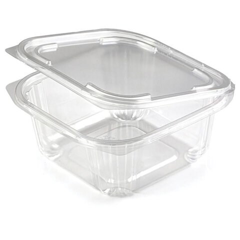 Контейнеры с небольшими ребрами жесткости и неразъемной крышкой. Надежное штабелирование. Изготовлены из пищевого пластика. Крышка плотно и крепко облегает пищевой контейнер, что снижает вероятность контакта продуктов с внешней средой. Разогрев в микроволновке не допускается.
