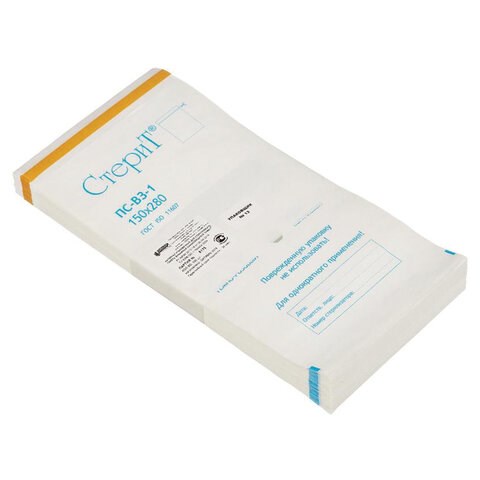 Пакет бумажный самоклеящийся ВИНАР СТЕРИТ, комплект 100 шт., для ПАРОВОЙ/ВОЗДУШНОЙ стерилизации, 150х280
