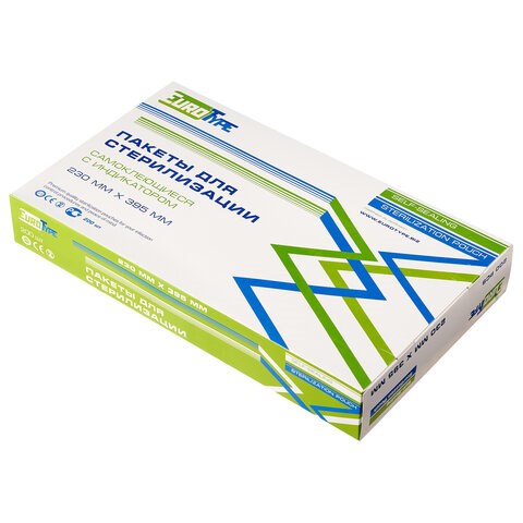 Пакет комбинированный самоклеящийся 230х395 мм EUROTYPE 200 шт., для ПАРОВОЙ/ГАЗОВОЙ стерилизации