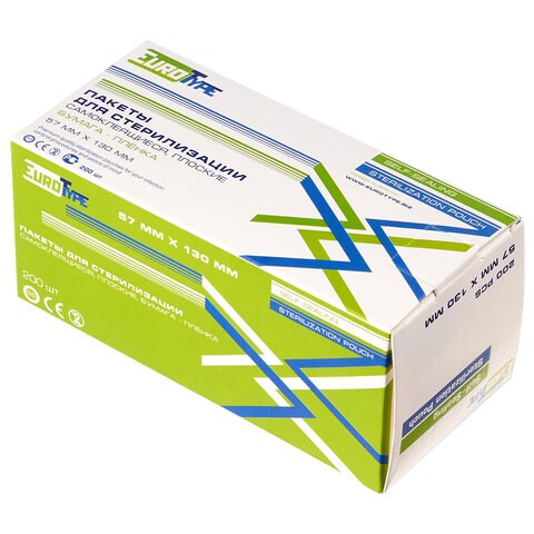 Пакет комбинированный самоклеящийся 57х130 мм EUROTYPE 200 шт., для ПАРОВОЙ/ГАЗОВОЙ стерилизации