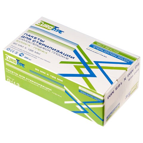 Пакеты плоские EUROTYPE для паровой и газовой стерилизации самоклеящиеся.