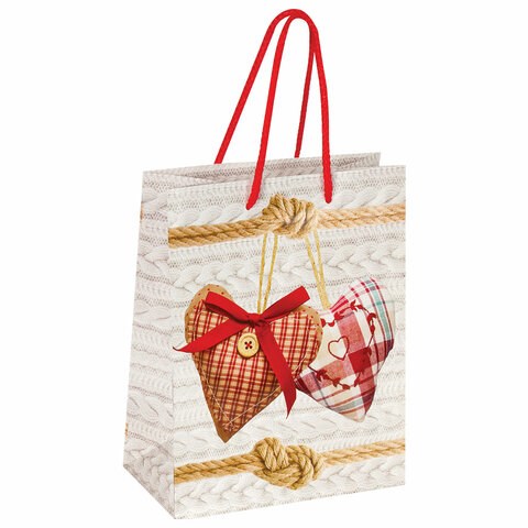 Пакет подарочный (1 штука) 18x10x23 см, ЗОЛОТАЯ СКАЗКА "Два сердца", ламинированный, 606573