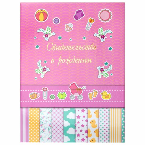 Папка адресная ламинированная "СВИДЕТЕЛЬСТВО О РОЖДЕНИИ", А4, для девочки, STAFF "Profit", 129587