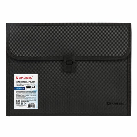 Папка для бумаг и документов с замком и 13 отделениями BRAUBERG "HIT", А4, пластик, черная, 229572