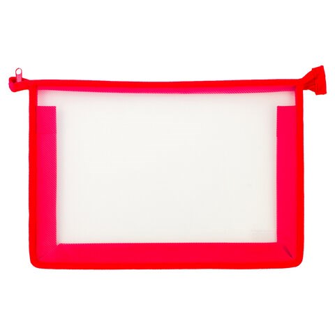 Папка для тетрадей А4 ПИФАГОР, пластик, молния сверху, прозрачная, красная, 228208