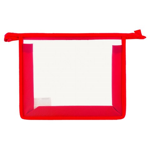 Папка для тетрадей А5 ПИФАГОР, пластик, молния сверху, прозрачная, красная, 228220
