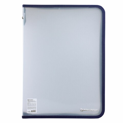 Изготовлена из прочного прозрачного матового пластика толщиной 0,5 мм с диагональной фактурой. Формат А4 (335х240 мм). Надежный замок-молния защищает документы от механических повреждений, а также пыли и влаги. Цвет молнии - синий.