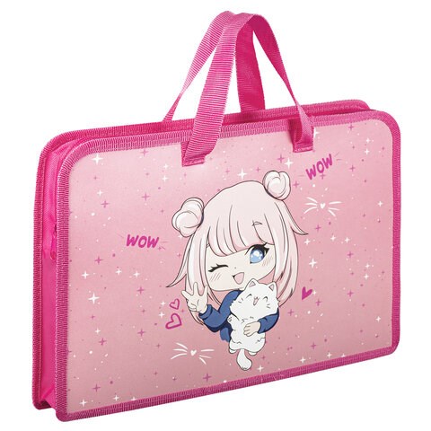 Папка на молнии с ручками ЮНЛАНДИЯ А4, 1 отделение, пластик, ширина 45 мм, "Anime Pals", 271457