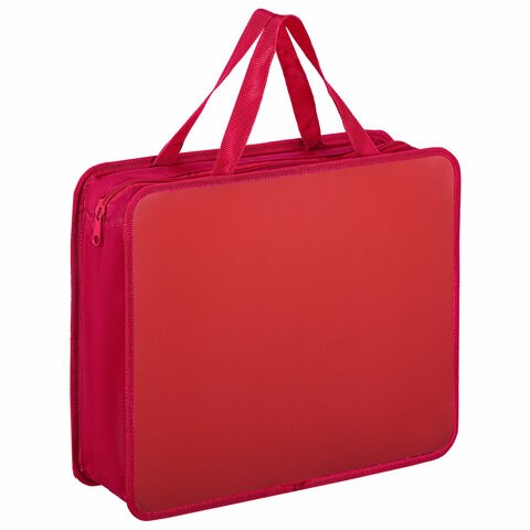 Папка на молнии с ручками ПИФАГОР, А4, 1 отделение, пластик, 75 мм, красная, 228232