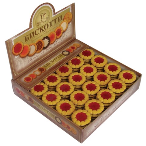 Печенье БИСКОТТИ "Коста браво" сдобное с вишневым мармеладом, шоу-бокс 2 кг