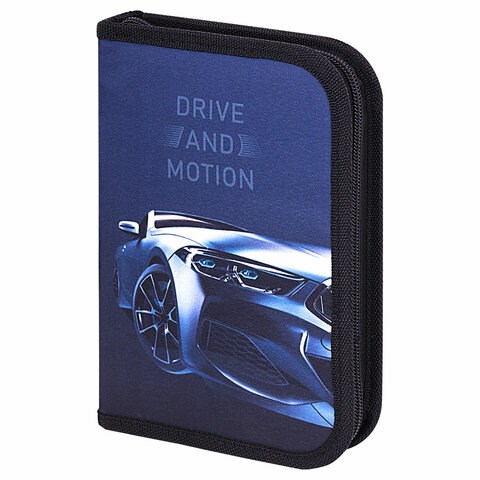 Пенал BRAUBERG с наполнением, 1 отделение, 1 откидная планка, 24 предмета, 21х14 см, "Sport car", 271527