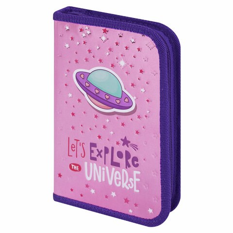 Пенал ЮНЛАНДИЯ, 1 отделение, металлизированный картон, конгрев, 19х11 см, "Moon Explorer", 271507