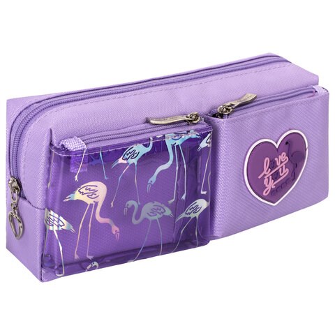 Пенал-косметичка ЮНЛАНДИЯ, 1 отделение, 2 кармана, полиэстер, "Flamingo", фиолетовый, 20х6х8 см, 270260