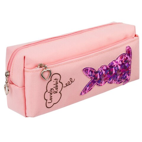 Пенал мягкий ЮНЛАНДИЯ, 2 отделения, полиэстер, "Bunny", розовый, 20х7х9 см, 228988