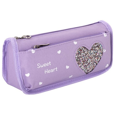 Пенал мягкий ЮНЛАНДИЯ, 2 отделения, полиэстер, "Heart", фиолетовый, 21х6х9 см, 270259
